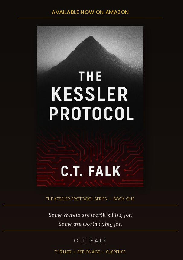 After thirty-six years in corporate banking and executive management, C.T. Falk had seen enough behind the curtain to know the best thriller material doesn't come from imagination — it comes from experience. A University of Central Florida graduate, he spent decades navigating the world of international finance before channeling everything he'd witnessed into his debut novel, The Kessler Protocol. The series follows the collision between Wall Street power and the shadow organizations that operate in the spaces between governments and corporations. Falk lives with his wife and a Pug who takes full credit for the editorial process.